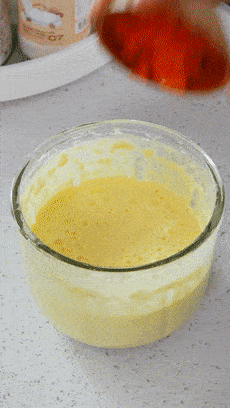 鐵棍山藥塊兒和雞蛋、低筋粉一塊攪打,一直攪打到空氣都進去,肉眼也能看到滿滿的氣泡,這個就是小餅蓬松柔軟的關鍵。