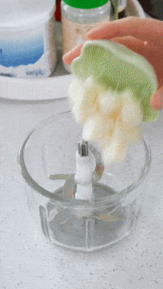 啟動料理機,將食材打成蓬松細膩的面糊。這裡我建議你們攪打的時間長一點,給空氣打進去,這樣吃起來會更加松軟。
