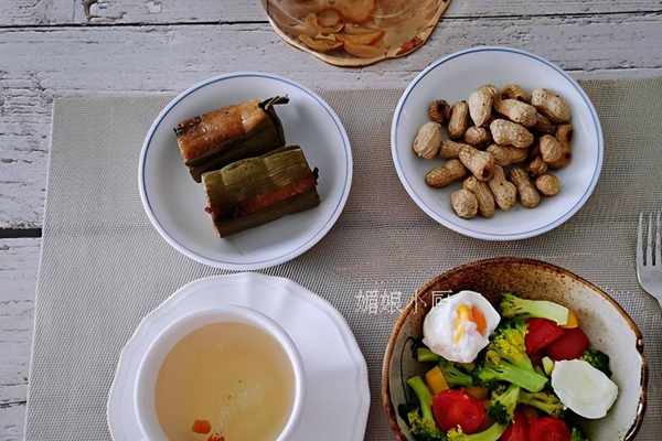 紅棗枸杞山楂菊花茶|梅幹菜肉粽|水煮西蘭花|煮花生