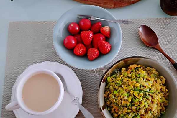牛奶紅茶|雜蔬炒粗糧饃饃