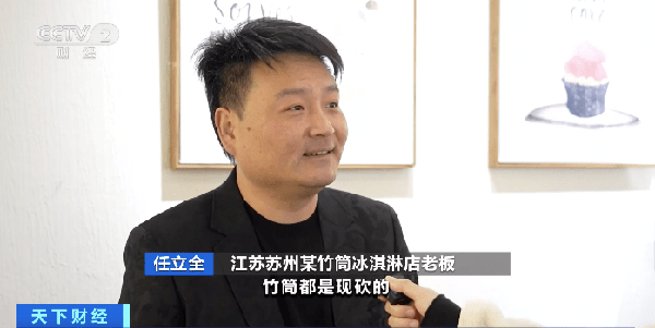 江蘇蘇州某竹筒冰激凌店老板 任立全:竹筒是在山上現砍的,一個竹筒6元,加運輸費將近8元一個,所以成本相對會高一點。