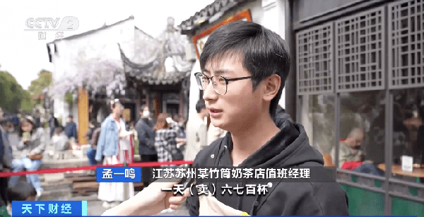 江蘇蘇州某竹筒奶茶店值班經理 孟一鳴:平常一天賣六七百杯,節假日一千多杯。