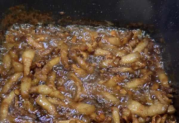 步驟5:然後就可以開始鹵制瞭,有條件的加入骨頭湯,沒有的話加些熱水也可以的。湯可以多加一點,因為要燉很長時間,也可以中途加水。一直燉2個小時,中途記得攪拌,因為燉1個小時之後,豬皮會出膠,容易糊底,不時攪拌,防止粘鍋。
