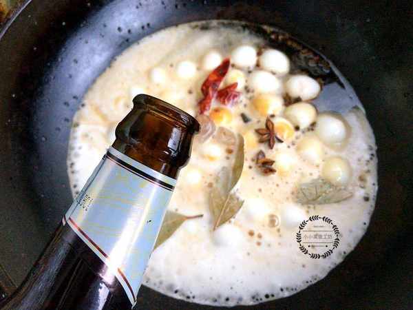 3、最後加入啤酒大火煮開後轉小火慢鹵30分鐘即可。