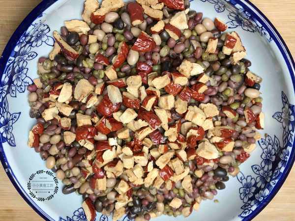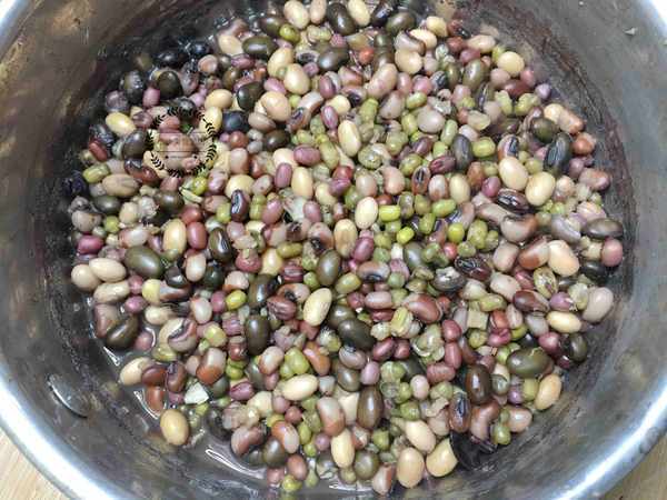 1、將所有豆子清洗幹凈,放入清水中浸泡一晚,第二天將泡脹的豆子煮熟後瀝水備用。