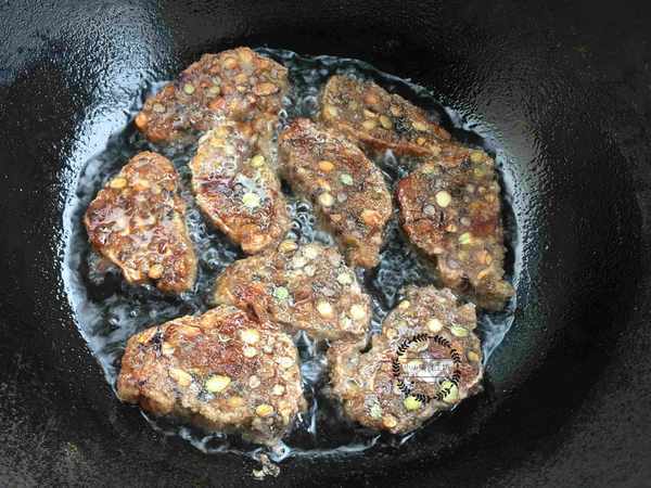 4、將豆腐小餅放入油鍋中煎至兩面金黃即可出食用。