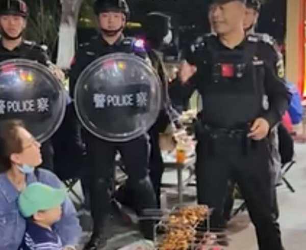 燒烤旁邊有警察在旁邊巡邏的感覺