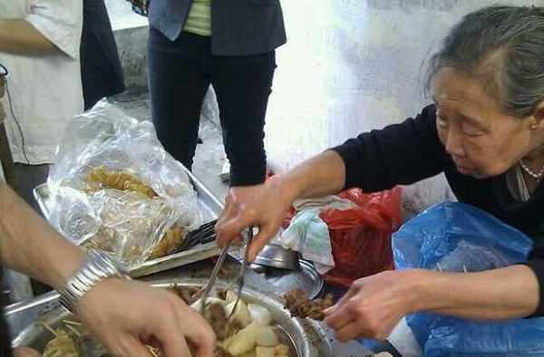牛雜和各種鹵味用夾子裝到碗裡,上面淋上老太太秘制的醬料特別誘人,很多人都喜歡老太太自制的辣椒面混合白米醋調出來的酸辣醬,每份牛雜是20塊錢,看似不便宜但是老太太給的量也不少而且幹凈衛生味道美,大傢也就不覺得貴瞭。不少人排隊去買牛雜還會拍照,因為出攤時間不固定,對吃貨們來說能吃得到真的是好運氣,每次一出攤就有街坊發消息告訴吃貨們,想吃牛雜的人就會奔走相告讓其他想吃牛雜的人趕緊過去排隊,老太太擺攤的一些東西會放在街上一傢門店裡,這傢門店的人拉瞭幾個群,每次出攤都是她告訴群裡吃貨。