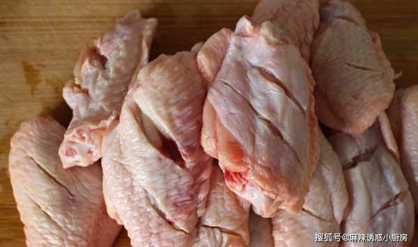 1.先來處理雞翅,買回來的雞翅清洗幹凈,然後用清水浸泡20-30分鐘,去掉血水。用刀在雞翅背上兩面各劃幾刀,然後用廚房紙吸幹表面水分。