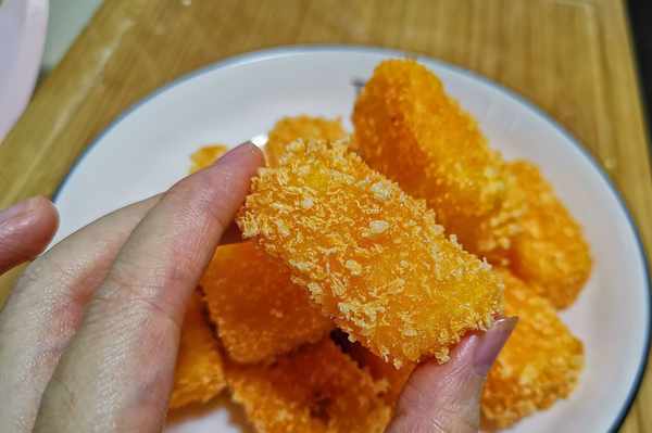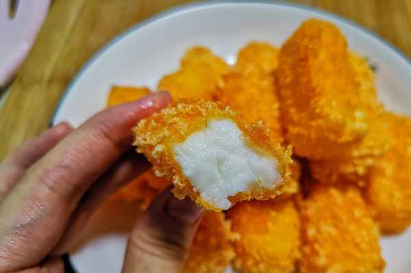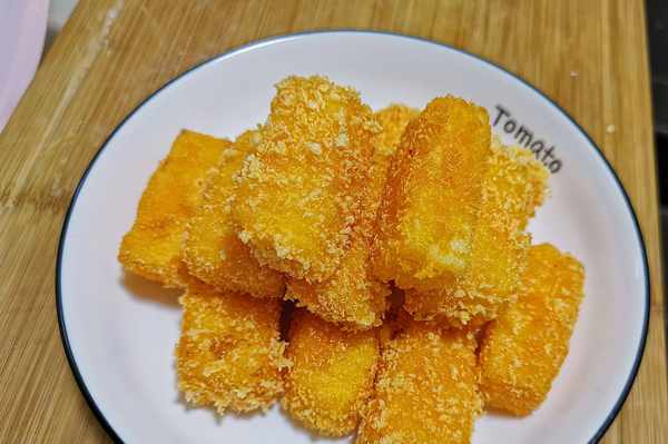 一盤非常誘人的脆皮炸鮮奶就做好瞭。咬一口外酥裡嫩,奶香味是非常濃鬱的