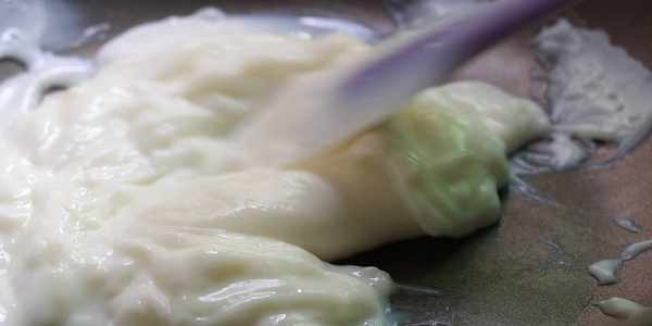 2、慢慢用鏟子攪拌至融化。稍微攪拌一會就好,淀粉是比較容易融化的。