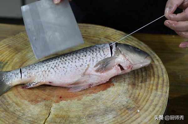1.第一個選擇是切鯉魚的脖子,然後也切魚的尾巴。