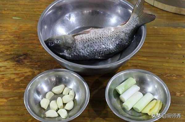 蔥、薑片、大蒜籽、鯉魚(鯉魚提前宰殺)