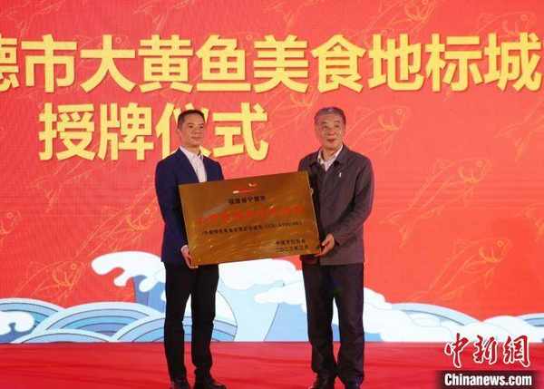 中國烹飪協會授予寧德市“大黃魚美食地標城市”牌匾。 林榕生 攝