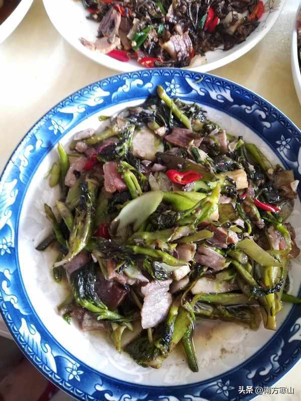 背著滿滿的鮮花回到傢,母親開始動手做春天裡最奢侈的“鮮花菜”。撿去雜物,經過煮、漂,把苦澀水去掉,三天後用幹辣椒、臘肉油素炒白花、臘肉炒苦刺花、白花蠶豆湯、老鴉頭菜湯、豆豉炒棠梨花、涼拌樹花、涼拌刺五尖、百花煮酸醃菜湯,辣醬涼拌油菜花,水煮芭蕉花,山茶花糯米粥等。春天的百花濃縮在母親的傢常菜中,春天的味蕾沉浸在滿桌的花菜中,一日三餐斷不瞭最廉價、最簡單、清涼、微苦、香噴噴的花菜味道。