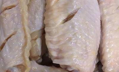 第一步,我們將雞翅洗凈,兩面各切兩刀,然後加入料酒20克,生抽15克,鹽2克抓勻醃制大概需要20分鐘。