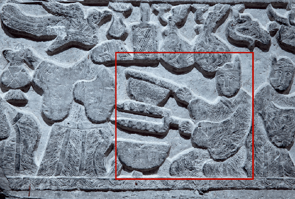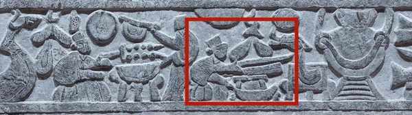 臨沂五裡堡漢畫像石——《庖廚圖》中,正在燒烤的庖廚。