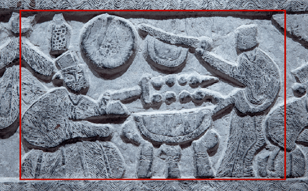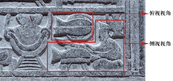 臨沂五裡堡漢畫像石——《庖廚圖》中的剖魚畫面。