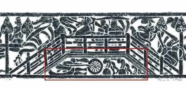臨沂吳白莊漢畫像石拓片中的捕魚畫面。