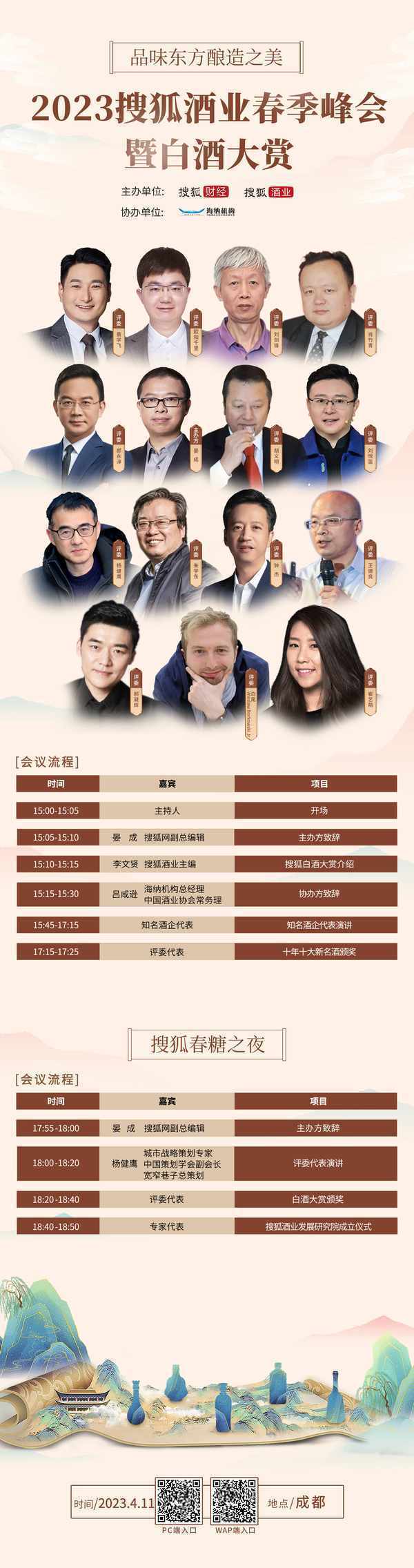 “品味東方釀造之美”,2023年4月11日,首屆搜狐酒業春季峰會暨中國白酒大賞將於成都舉行,協會領導、酒企嘉賓及跨界大咖再度齊聚,共品白酒文化之美,共話白酒行業之盛。