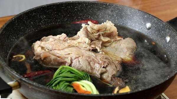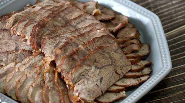 5、 浸泡好以後,把牛肉盛出,切成片狀,食用的時候可以蘸取自己喜歡的醬料。
