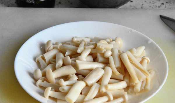 ③將焯水後的杏鮑菇切小段