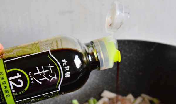 ⑤調入一勺輕鹽醬油,半勺蠔油調味。咸度可以不需要再加鹽