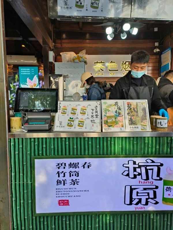 翠綠的竹筒,搭配綿密的奶油雪頂,和花果凍幹的裝飾,再貼上“蘇州”字樣的城市標簽,這樣的組合新潮搶眼。捧在手上去各個景區打卡拍照,既應景,又出片,回頭率滿滿。