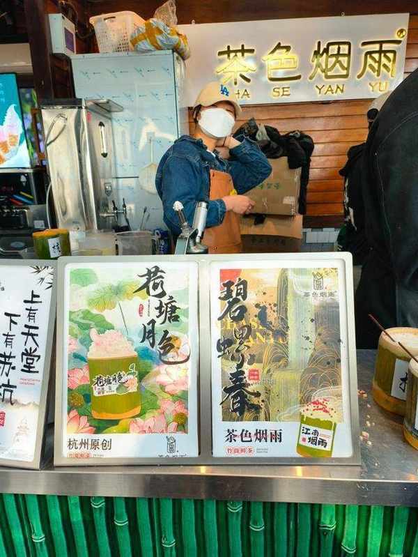 竹筒奶茶的價值不在於好喝,拿到竹筒奶茶後的第一步,不是猛吸一口或者舀一勺奶油,而是摸出手機,打開攝像頭,拍張美照。店面門口的大樹、再走幾步的西湖,此時此刻,都是這一杯竹筒奶茶的背景。