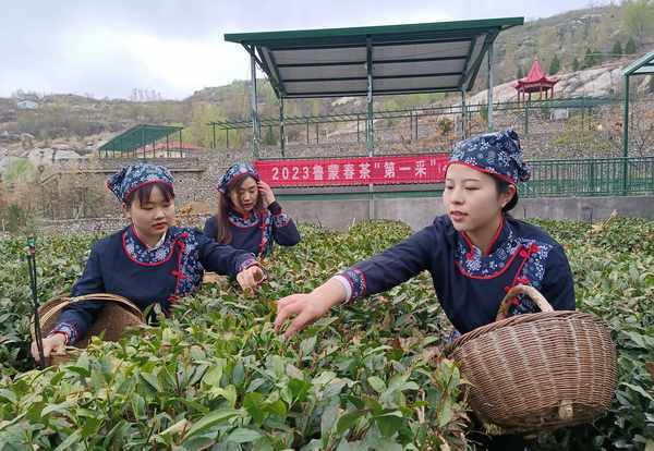 采茶活動開始,隻見茶園裡,采茶姑娘們身著沂蒙村姑春裝,盡顯俊俏嫵媚,她們在茶樹間來回穿梭,一雙雙靈巧的纖手在枝葉間舞動,一葉葉細芽飛入腰間的竹籃中,不一會兒,嫩嫩的茶青就裝滿瞭茶籃。在她們的帶領下,茶農們采摘著新茶,歡聲笑語,忙個不停。