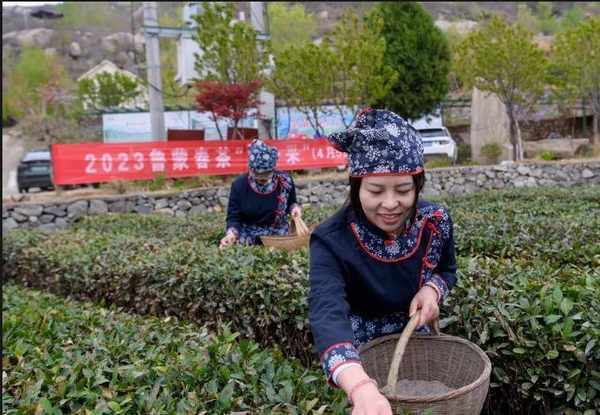 4月5日,清明時節,位於平邑縣仲村鎮依山莊的1500餘畝魯蒙雲頭山基地鬱鬱蔥蔥,滿山遍野的茶樹已吐露新芽,茶香氤氳,一片春光明媚、詩意盎然的喜人景象。上午,由平邑縣魯蒙茶業專業合作社組織的“2023魯蒙春茶第一采”活動在這裡舉行,吸引瞭眾多觀景賞花的遊人前來觀賞。