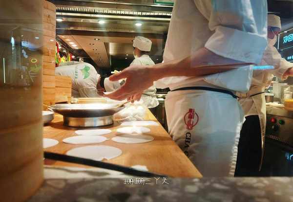 等待的過程中,因為我的位置隔著玻璃可以看見廚師操作,這時廚師正在做蝦餃,作為一名資深的老廣,深知粵式各式各樣的精致點心,以“蝦餃”最受歡迎,有瞭“點心之皇”之稱,餐館的蝦餃做得好吃瞭,其他點心基本也不會差的。這時,我留意著師傅包蝦餃做褶紋的動作,但他太快瞭,我一下沒數清,不確定他是做瞭10、11、12還是13道褶紋?“十三”道的褶紋是挑剔的食客去考究點心師傅的摺皮手藝的方法。但隻要是10道褶紋以上的蝦餃,我們都可以認為是合格瞭,這樣看這傢餐廳的粵式點心一定是合格的。