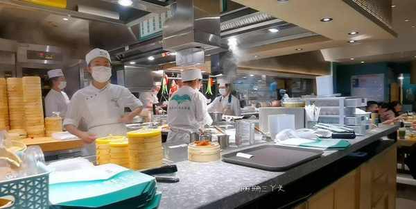走進茶餐廳,非常“港式”裝修風格,非常簡潔,有室內和室外的就餐位置,給人的感覺非常幹凈衛生。最吸引珊珊三丫頭目光的是這傢茶餐廳的廚房,隔著玻璃可以清晰看到廚師在裡面的每一個操作,這讓食客非常放心。找座位時,在餐廳的墻體上看到瞭這句話:手工現做,真的好吃很多!粵式點心現點現做,即點即蒸,一口就能吃出是否地道的粵式風味,這種操作,是可以吃出餐廳廚師的真正功底的。