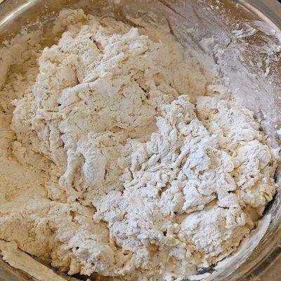 8.加入幹面粉,將其卷成合適大小的餃子皮