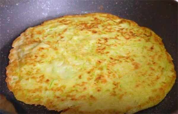 4.給大傢說一下,咱們烙這個餅的時候,一定要烙的黃一點,焦一點,這樣吃的時候口感會特別的好,而且吃起來軟軟的,特別的鮮美,喜歡吃西葫蘆的朋友趕緊試試。