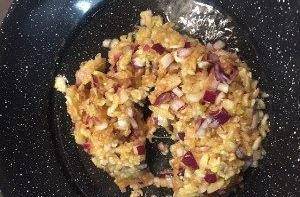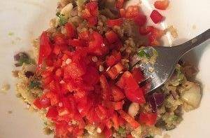 炒熟後將紅椒碎一起拌勻