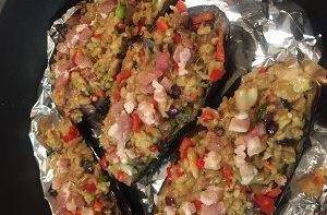 將烤熟的茄子取出並裡面朝上。