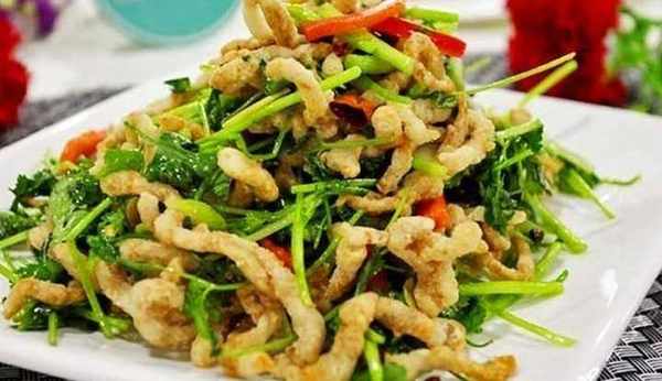 裡脊,香菜,辣椒,蔥,薑,料酒,生抽,糖,胡椒,蒜末,麻油,鹽各適量。
