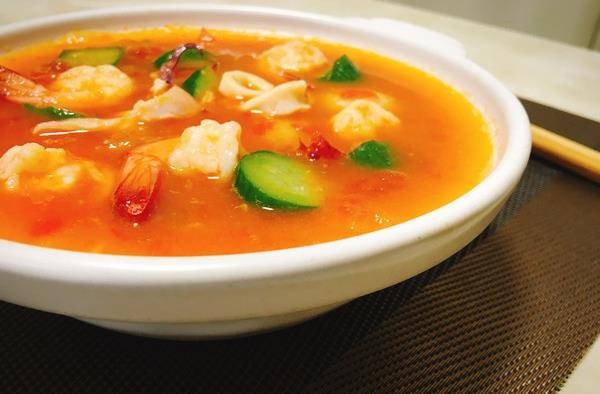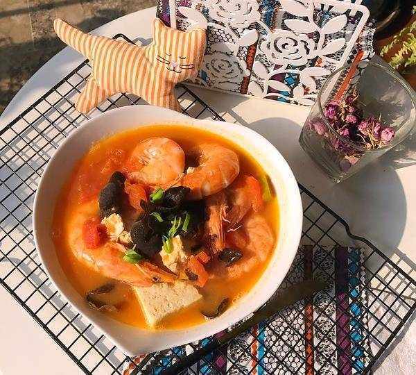 屬於湯菜,酸酸辣辣帶一點甜,天冷吃非常開胃,蝦肉很脆彈噠。。。而且熱量不高,使勁吃!!呃。。做中餐調料我都是嘗著放的,所以沒有定量。。。