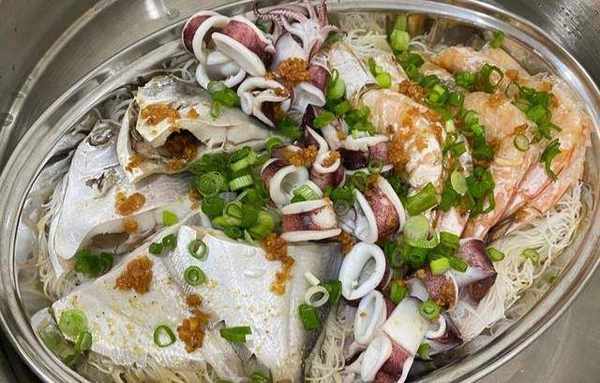 -2.海鮮以自己喜歡的大小切塊。-米粉鋪在盤底,再鋪上海鮮,淋上調味料中火蒸10分鐘(根據自己喜歡的熟度和海鮮的大小)。-出鍋後撒上蒜米和蔥花。註:新鮮的海鮮就算沒有放薑絲也不會有腥味。建議用新鮮的海鮮。