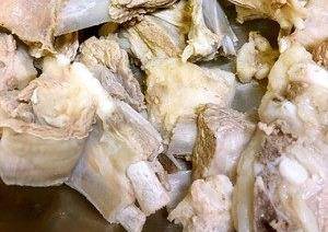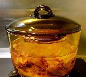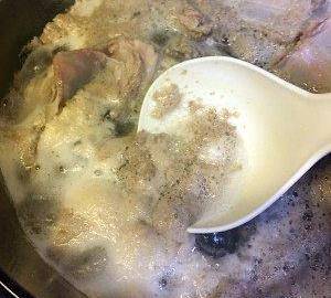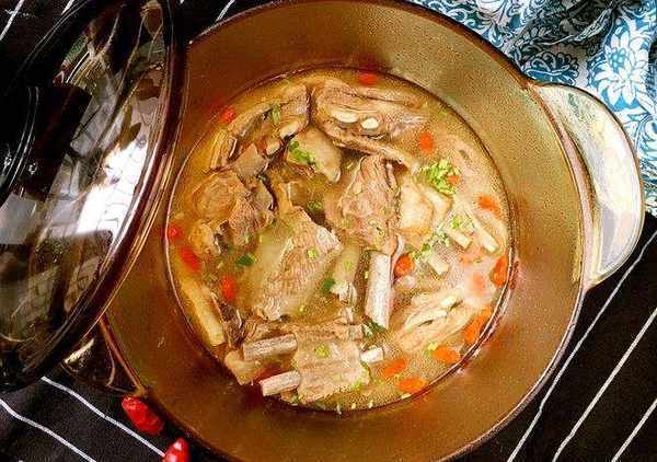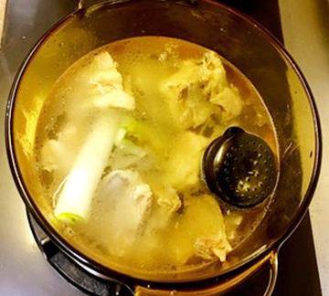大火煮開,轉小火慢燉大概40分鐘左右,加入鹽和白胡椒粉如果嫌肥,此時可以撇一撇浮油由於白胡椒粉比較輕,所以不好稱量,白胡椒粉的作用是提鮮去膩,所以適量即可,不必吃出辣味。我加瞭枸杞子,不加也可以