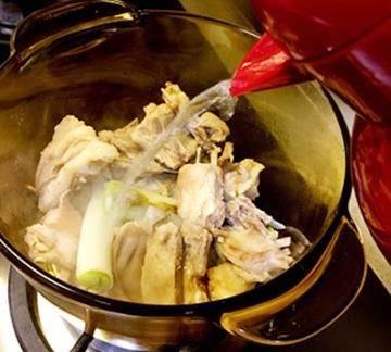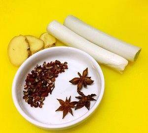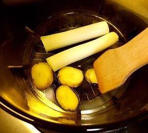 鍋底放一勺(吃飯用的勺)油,放入蔥薑稍炒一下