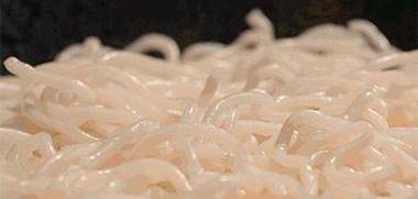 8、300g鮮米線放入沸水中燙1分鐘,放入碗中。加上韭菜段、手撕好的蹄髈肉和皮。