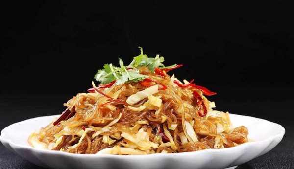 把包菜洗幹凈切成絲,同時把粉絲泡開。