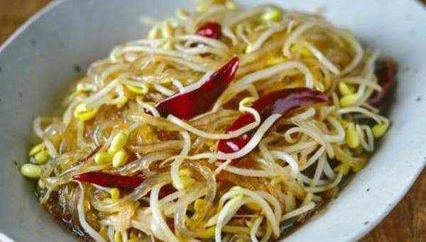 黃豆芽炒粉條:1、粉條泡好備用,黃豆芽洗凈,挑幹凈裡面的黃豆皮,備用。2、蒜蔥切片,熱鍋,放油,小火放入蔥蒜辣椒。3、煸出香味開大火,放入黃豆芽翻炒。4、加入粉條,烹入蠔油和生抽,翻炒,加少許水。5、待豆芽和粉條都熟,加少許鹽調味即可。
