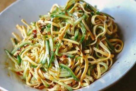熗拌幹豆腐絲:1、幹豆腐切絲,蔥切絲,香菜切段,蒜切成末2、幹豆腐絲過水焯一下,然後和香菜段、蔥絲、蒜末一起倒入一個大碗裡3、加入適量鹽、味精、糖和熟芝麻,倒入一瓶蓋的醬油。4、放入辣椒油,攪拌均勻啊攪拌均勻。5、倒入適量香油,然後繼續攪拌均勻啊攪拌均勻。