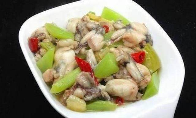 泡椒田雞:田雞清洗幹凈斬成小塊後,放入合中加點料酒、鹽、黑胡椒粉拌勻醃制20分鐘,配菜調料準備好,鍋裡放油,放入田雞炒至變色後撈出備用,鍋中留少許底油爆香薑蒜泡椒,先放入配菜加入鹽、糖翻炒片刻,再放入田雞翻炒均勻,加點料酒炒勻,加入少許清水煮3分鐘,試湯汁後再調味,出鍋裝盤!