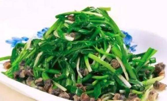 韭菜炒螺螄:1.螺螄用開水焯一下,用牙簽挑出螺肉,加面粉和鹽洗凈。2.韭菜切段,油熱,把薑爆一下。3.倒入螺螄肉煸炒,盛起備用。再次倒油,油熱,倒入韭菜翻炒。4.韭菜快熟時倒入螺螄肉再一起翻炒,最後加鹽,炒勻出鍋。