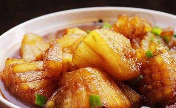 紅燒冬瓜:1、冬瓜去皮洗幹凈,切塊,然後在每一塊冬瓜上像這樣切十字刀花。這樣做是讓冬瓜更入味.蔥和大蒜頭也切好備用。2、起油鍋,把切好冬瓜的底部先煎一下,因為接近皮的部分很硬,需要稍微多煎一下,開中火煎到兩邊金黃就可以瞭.3、下切好的蒜粒爆香4、放適量的清水,再加生抽,老抽,桂皮.一起煮,蓋上鍋蓋燜個5分鐘.最後開大火,收汁,再撒點蔥花,放點雞精和鹽,就可以起鍋瞭。