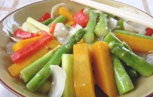 蘆筍炒南瓜:1、南瓜去皮切塊;2、蘆筍斜切成段;3、鍋內水煮開,加入幾滴油;4、倒入切好的蘆筍;5、煮1-2分鐘立即起鍋瀝水備用(這主要是去青);6、鍋內放入油燒開,倒入翻炒蘆筍;另起鍋裝盤,在放入南瓜翻炒7、南瓜炒至8成熟,加入蘆筍翻炒入味,炒熟即可出鍋。